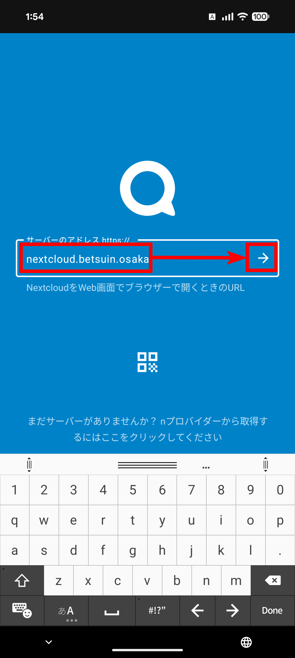 インストールして起動後、「サーバーのアドレス」に以下のURLをコピペし、「→」をタップ。